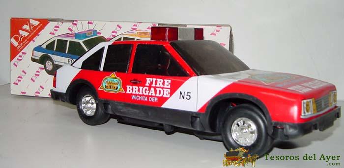 ANTIGUO COCHE DE BOMBEROS DE PAYA - MODELO VOLKSWAGEN PASSAT - DE HOJALATA LITOGRAFIADA A PILAS -. CON SU CAJA ORIGINAL - MIDE 32 CMS. DE LONGITUD A PILAS . NUEVO A ESTRENAR