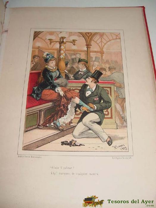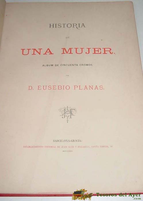 HISTORIA DE UNA MUJER. ALBUM DE CINCUENTA CROMOS. PLANAS, EUSEBIO. EDIT. TRILLA Y SERRA. BARCELONA, C. 1880. 41,5 CM. 1 H. Y 50 CROMOLITOGRAFíAS DIBUJADAS POR EL AUTOR Y REALIZADAS POR PIGRAU Y ALEU. ENC. EN MEDIA PIEL. * SEGUNDA EDICIóN DE ESTA OBRA QUE EMPEZó A GERMINARSE EN MéXICO COMO UNA IDEA COMERCIAL. LA CIGARRERA EL BUEN TONO DECIDIó INSERTAR EN CADA CAJETILLA, DESDE 1880, UNA SERIE DE 102 LITOGRAFíAS EJECUTADAS POR EL PINTOR CATALáN E. PLANAS. HISTORIA DE UNA MUJER APARECE COMO LO MáS CERCANO AL LENGUAJE DE LA HISTORIETA, CON UNA SERIE DE VIñETAS ILUSTRADAS EN LAS QUE EL TEXTO QUEDA INSERTADO EN EL PIE DE LA LáMINA. PALAU
