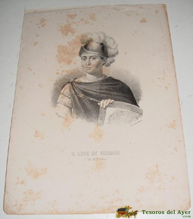 ANTIGUA LITOGRAFIA - D. LOPE DE VIZCAYA 1º SR. DE VIZCAYA - APROX. 1850 DE J. CEBRIAN, DIBº Y LITº, LIT. J. DONON MADRID - MIDE 33,5 X 23,5 CMS. TAL COMO SE VE EN LAS 2 FOTOS QUE HEMOS SACADO.