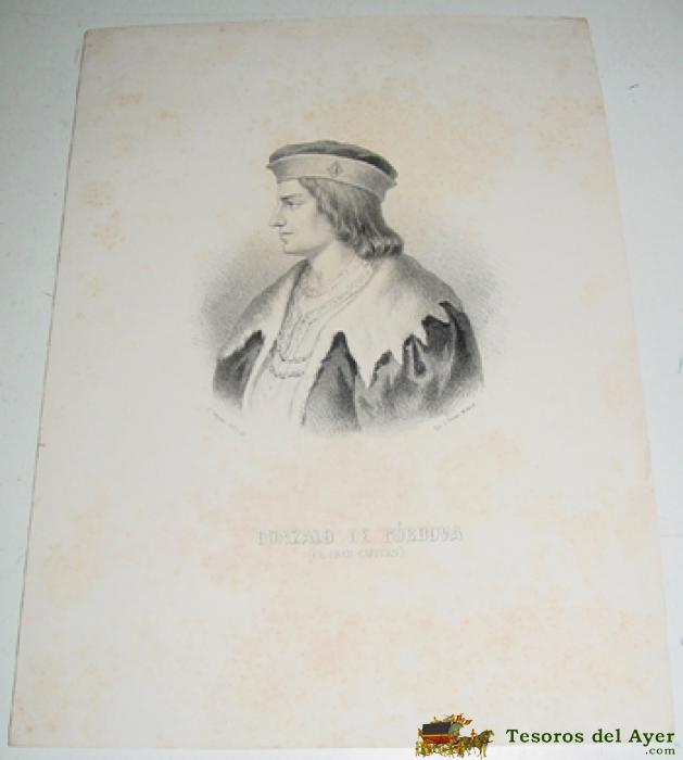 ANTIGUA LITOGRAFIA - GONZALO DE CORDOVA, EL GRAN CAPITAN - APROX. 1850 DE J. CEBRIAN, DIBº Y LITº, LIT. J. DONON MADRID - MIDE 33,5 X 23,5 CMS. TAL COMO SE VE EN LAS 2 FOTOS QUE HEMOS SACADO.