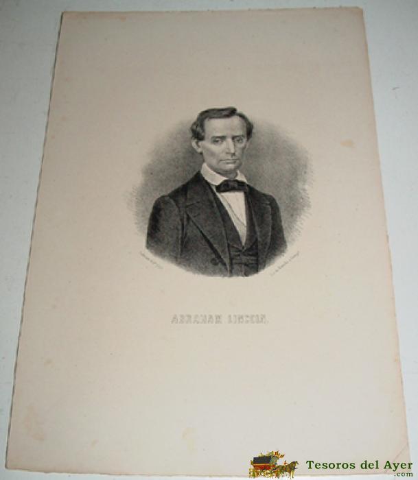 ANTIGUA LITOGRAFIA - ABRAHAM LINCOLN - APROX. 1850, CEBRIAN DIBº Y LITº, LIT DE RONCHI Y COMPª - MIDE 33,5 X 23,5 CMS. TAL COMO SE VE EN LAS 2 FOTOS QUE HEMOS SACADO