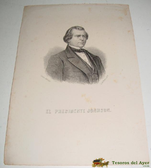 ANTIGUA LITOGRAFIA - EL PRESIDENTE JONHSON - APROX. 1850, LLANTA DIBº Y LITº, LIT DE RUBIO Y COMPª - MIDE 33,5 X 23,5 CMS. TAL COMO SE VE EN LAS 2 FOTOS QUE HEMOS SACADO