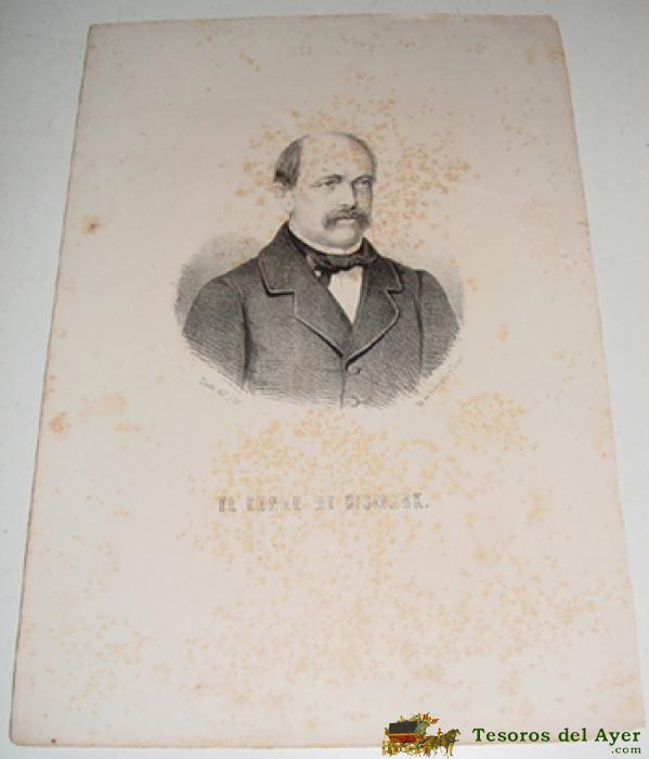ANTIGUA LITOGRAFIA - EL CONDE DE BISMARK - APROX. 1850, LLANTA DIBº Y LITº, LIT DE RUBIO, GRILO Y VITTURI - MIDE 33,5 X 23,5 CMS. TAL COMO SE VE EN LAS 2 FOTOS QUE HEMOS SACADO