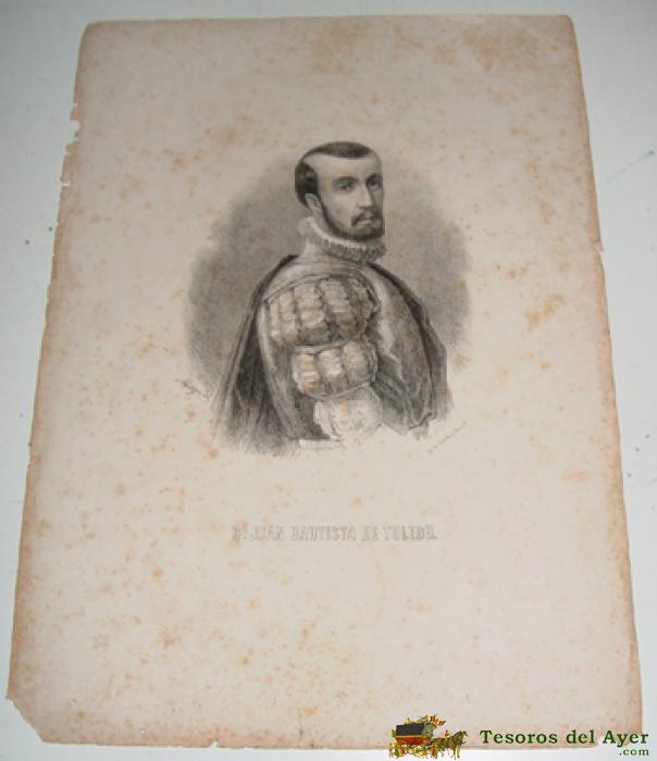 ANTIGUA LITOGRAFIA - D. JUAN BAUTSITA DE TOLEDO - APROX. 1850, LIT DE RONCHI Y CíA.- MIDE 33,5 X 23,5 CMS. TAL COMO SE VE EN LAS 2 FOTOS QUE HEMOS SACADO