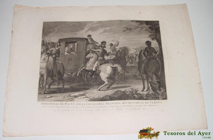 ANTIGUO GRABADO - LUIGI AGRICOLA INV. E DELIN - GIO PETRINI INC. IN Rª - Nº 15 - ARRESTO DI S.S. PIO VI DALLA CAVALLERIA FRANCESE RETROCEDUTA DA VERONA - DOPO LA GRAN BATTAGLIA ORDINANDOGLI IL COMANDANTE DI RITORNARE A PIACENZA E PRENDERE LA STRADA DEL PIEMONTE . SEGUI PASSATO IL PO DA PIACENZA SULLA STRADA DI MILANO IL 16 APRILE 1799 - MIDE 70 X 50,5 CMS. - TAL COMO SE VE EN LAS FOTOS TOMADAS.