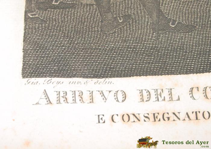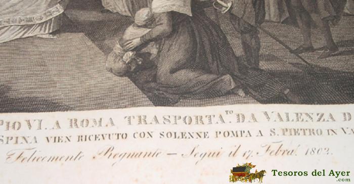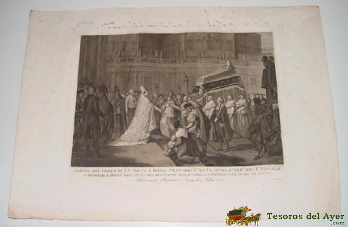 ANTIGUO GRABADO - G. BEYS INV. E DEL. - GIO PETRINI SCULP. ROMA - Nº 20 - ROMA ANNO 1803 . ARRIVO DEL CORPO DI S.S. PIO VI A ROMA TRASPORTATO DA VALENZA D´ORD DEL IMO. CONSOLE. E CONSEGNATO A MONSIGRE. GIUSPE. SPINA VIEN RICEVUTO CON SOLENNE POMPA A S. PIETRO IN VATICANO DAL S.P. PIO VII . FELICEMENTE REGNANTE - SEGUI IL 17 FEBRA. 1802 - MIDE 70 X 51 CMS. - TAL COMO SE VE EN LAS FOTOS TOMADAS.