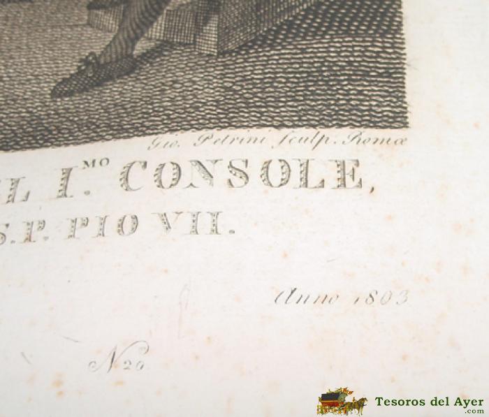 ANTIGUO GRABADO - G. BEYS INV. E DEL. - GIO PETRINI SCULP. ROMA - Nº 20 - ROMA ANNO 1803 . ARRIVO DEL CORPO DI S.S. PIO VI A ROMA TRASPORTATO DA VALENZA D´ORD DEL IMO. CONSOLE. E CONSEGNATO A MONSIGRE. GIUSPE. SPINA VIEN RICEVUTO CON SOLENNE POMPA A S. PI