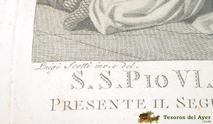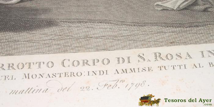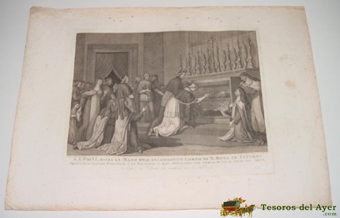 ANTIGUO GRABADO - LUIGI SCOTTI INV. E DEL. - PIETRO BONATO INC. ROMA - Nº 9 - S.S. PIO VI BACIA LA MANO DELL INCORROTTO CORPO DI S.ROSA IN VITERBO - PRESENTE IL SEGUITO PONTIFICIO E LE RELIGIOSE DI QUEL MONASTERO INDI AMMISE TUTI AL BACIO DEL PIEDE - SEGUI IN VITERBO LA MATTINA DEL 22 FEBRO. 1798 - MIDE 70 X 51 CMS. - TAL COMO SE VE EN LAS FOTOS TOMADAS.