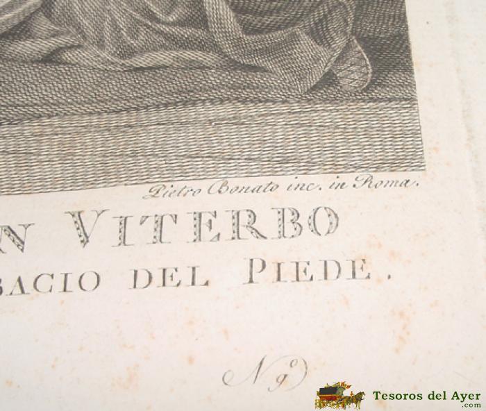 ANTIGUO GRABADO - LUIGI SCOTTI INV. E DEL. - PIETRO BONATO INC. ROMA - Nº 9 - S.S. PIO VI BACIA LA MANO DELL INCORROTTO CORPO DI S.ROSA IN VITERBO - PRESENTE IL SEGUITO PONTIFICIO E LE RELIGIOSE DI QUEL MONASTERO INDI AMMISE TUTI AL BACIO DEL PIEDE - SEGU