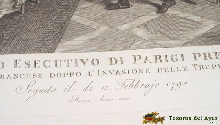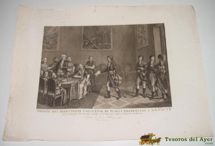 ANTIGUO GRABADO - G. BEYS INV. E DEL. - ALEX MOCCHETTI SCULP INC. ROMA - Nº 7 - ROMA ANNO 1805 . ORDINE DEL DIRETTORIO ESECUTIVO DI PARIGI PRESENTATO A S.S. PIO VI - DAL GENERAL FRANCESE DOPPO L´INVASIONE DELLE TRUPPE IN ROMA . SEGUITO IL DI 15 FEBBRAJO 1798 - MIDE 70 X 51 CMS. - TAL COMO SE VE EN LAS FOTOS TOMADAS.