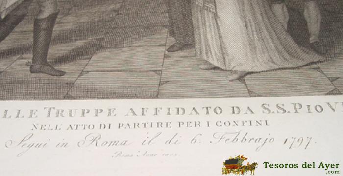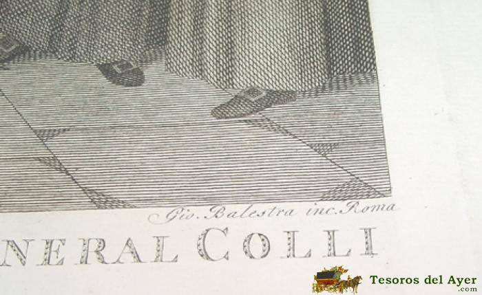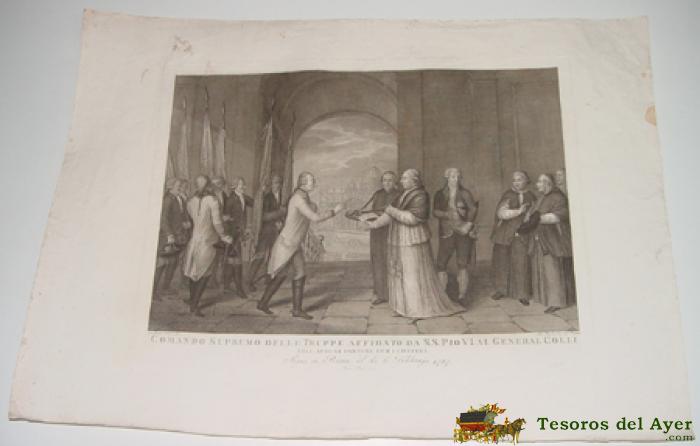 ANTIGUO GRABADO - G. BEYS INV. E DEL. - GIO BALESTRA INC. ROMA - Nº 5 - ROMA ANNO 1805 . COMANDO SUPREMO DELLE TRUPPE AFFIDATO DA S.S. PIO VI AL GENERAL COLLI - NELL´ATTO DI PARTIRE PER I CONFINI . SEGUI IN ROMA IL DI 6 FEBBRAJO 1797 - MIDE 70 X 51 CMS. - TAL COMO SE VE EN LAS FOTOS TOMADAS.