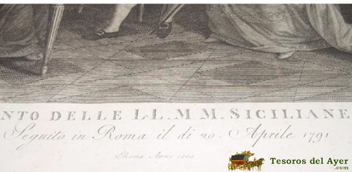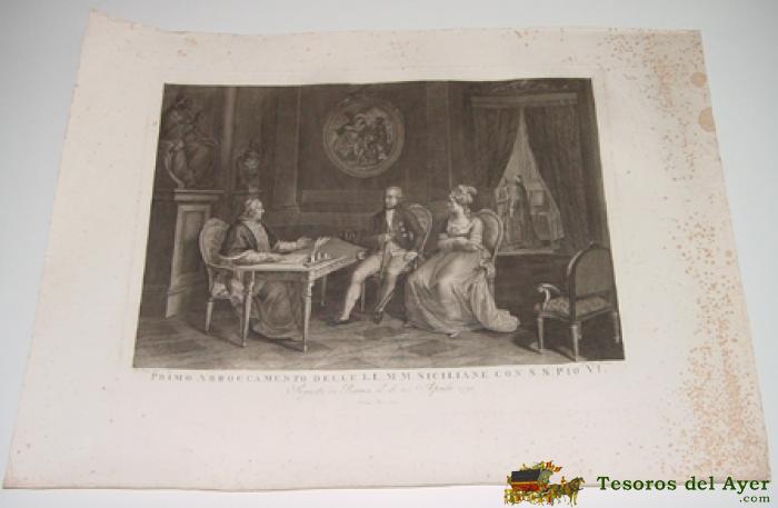 ANTIGUO GRABADO - G. BEYS INV. E DIS. - PIETRO BONATO INC.- Nº 4 - ROMA ANNO 1805 . PRIMO ABBOCCAMENTO DELLE LL.MM. SICILIANE CON S.S. PIO VI - SEGUITO IN ROMA IL DI 20 APRILE 1791 - MIDE 70 X 51 CMS. - TAL COMO SE VE EN LAS FOTOS TOMADAS.