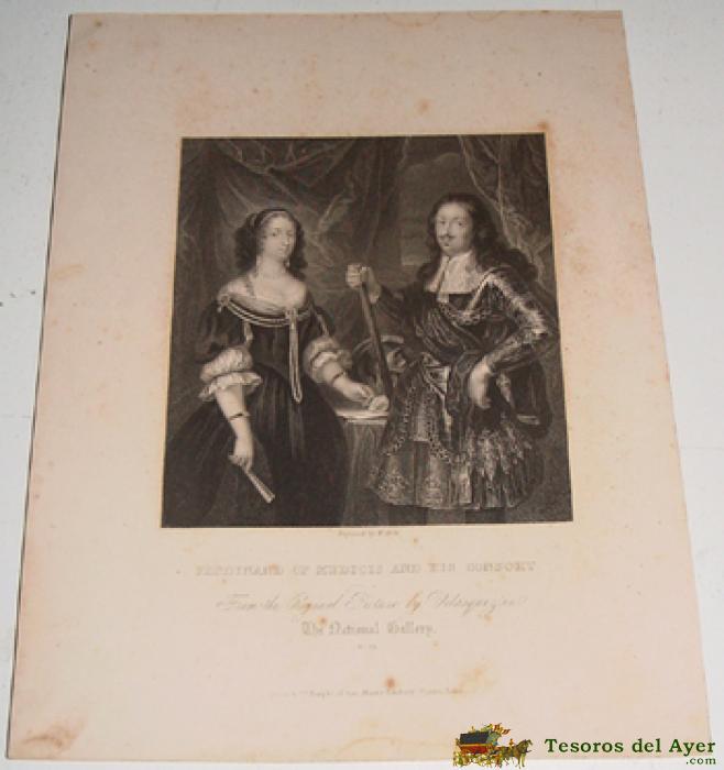 ANTIGUO GRABADO FERDINAND OF MEDICIS AND HIS CONSORT - FROM THE ORIGINAL PICTURE BY VELAZQUEZ UN THE NATIONAL GALLERY - Nº 24 - GRADADO POR W. HOLL - MIDE 27 X 20 CMS.