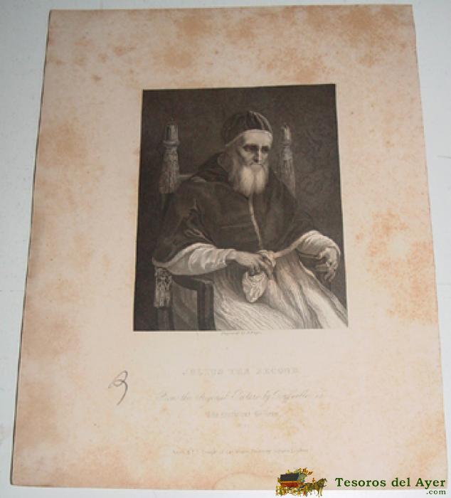 ANTIGUO GRABADO JULIUS THE SECOND - FROM THE ORIGINAL PICTURE BY RAFAELLE IN THE NATIONAL GALLERY - Nº 62 - GRADADO POR R. PAGE - MIDE 27 X 20 CMS.