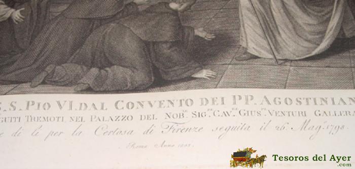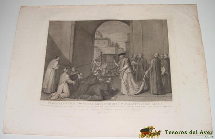 ANTIGUO GRABADO - G. BEYS INV. E DIS. - DOMENICO MANCHETTI INC.- Nº 10 - PARTENZA DI S.S. PIO VI DAL CONVENTO DEI PP. AGOSTINIANI DI SIENA - PASSANDO AD ABITARE PER I SEGUITI TREMOTI NEL PALAZZO DEL NOBLE SIGRE. CAVRE. GIUSPE. VENTURI GALLERANI, INDI IN VILLA SERGARDI E DI LI PER LA CDERTOSA DI FIRENZE SEGUITA IL 26 PAG. 1798 - MIDE 70 X 51 CMS. - TAL COMO SE VE EN LAS FOTOS TOMADAS