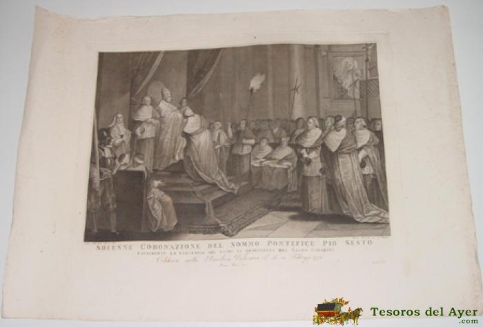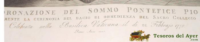ANTIGUO GRABADO - LUIGI AGRICOLA INV. E DIS - PIETRO BONATO INC. ROMA - Nº 1 - ROMA ANNO 1805 - SOLENNE CORONAZIONE DEL SOMMO PONTEFICE PIO SESTO . ESPRIMENTE LA CERIMONIA DEL BACIO DI OBBEDIENZA DEL SACRO COLLEGIO - CELEBRATA NELLA BASILICA VATICANA IL DI 22 FEBBRAJO 1775 - MIDE 70 X 50,5 CMS. - TAL COMO SE VE EN LAS FOTOS TOMADAS.