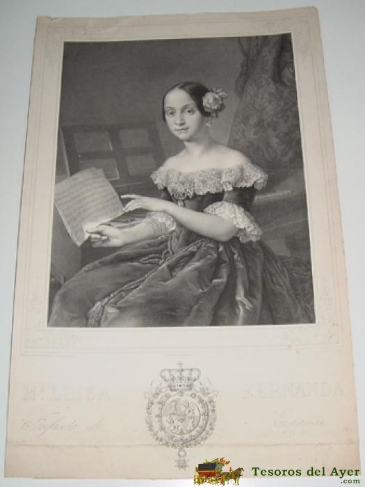 ANTIGUA LITOGRAFIA VICENTE LOPEZ LO PINTó AÑO 1842, LEON NOEL LO LITOGRAFIO, ESTAMPADO POR LEMERCIER - MARIA LUISA FERNANDA INFANTA DE ESPAÑA, MIDE 54,5 X 35 CMS. ALGUNA RAJA EN LA PARTE SUPERIOR TAL COMO SE VE EN LAS FOTOGRAFIAS.