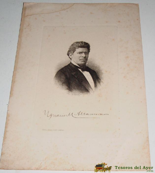 GRABADO ORIGINAL DE IGNACIO M ALTAMIRANO, PUENTE, GODOY Y COMPª, EDITORES - GRABADO DE 33X22 CM . FIRMADO EN PLANCHA.