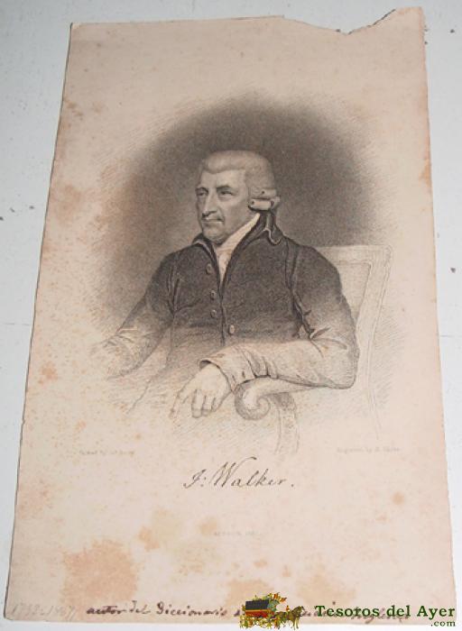 GRABADO ORIGINAL DE J. WALKER (1732-1807) - PINTADO POR J. BARRY - GRABADO POR R. HICKS - AUTOR DEL DICCIONARIO DE PRONUNCIACIÓN INGLESA - FECHADO EN LONDRES 1833 - MIDE 22,5 X 13,5 CMS.