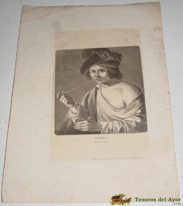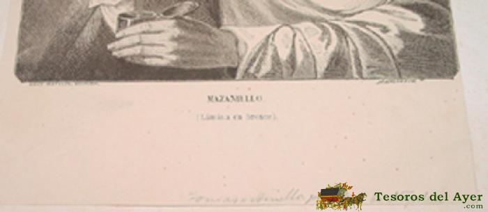 GRABADO ORIGINAL DE MAZANIELLO (LAMINA EN BRONCE) - POR M. VALENTIN - MIDE 22 X 14 CMS - PEGADO EN UNA CARTULINA DE 33 X 23,5 CMS.