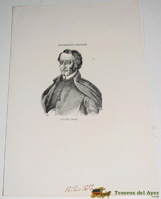 ANTIGUO LITOGRAFIA ANTONIO SOLIS - HISTORIADORES ESPAÑOLES - MIDE 26 X 16,5 CMS.