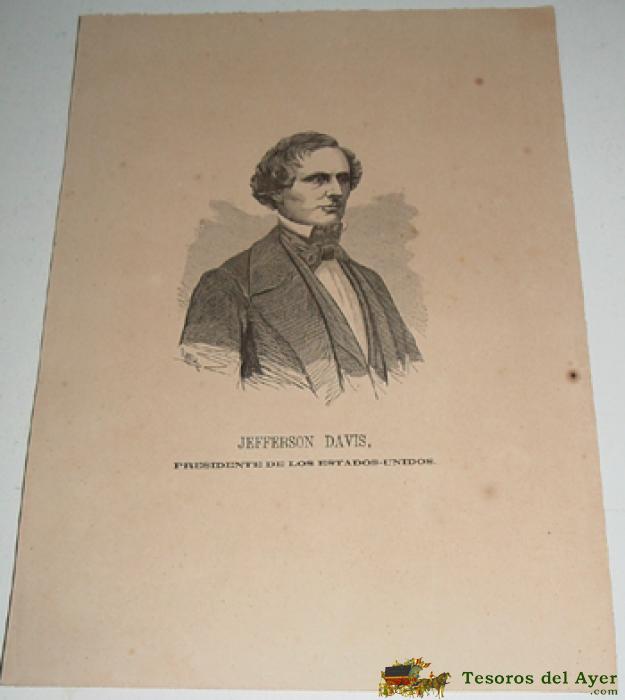 ANTIGUA LITOGRAFIA DE JEFFERSON DAVIS - PRESIDENE DE LOS ESTADOS UNIDOS - POR VARELA - MIDE 31 X 22 CMS.