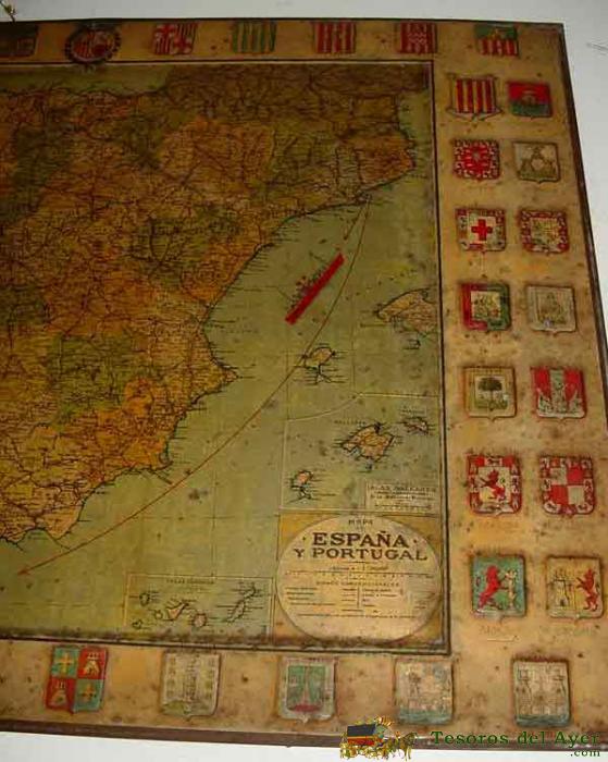 ANTIGUA CHAPA DE HOJALATA LITOGRAFIADA CON PUBLICIDAD DE SERVUS Y KAOL - MAPA DE ESPAÑA - MIDE 67X49 CMS - AÑO 1929/1930.
