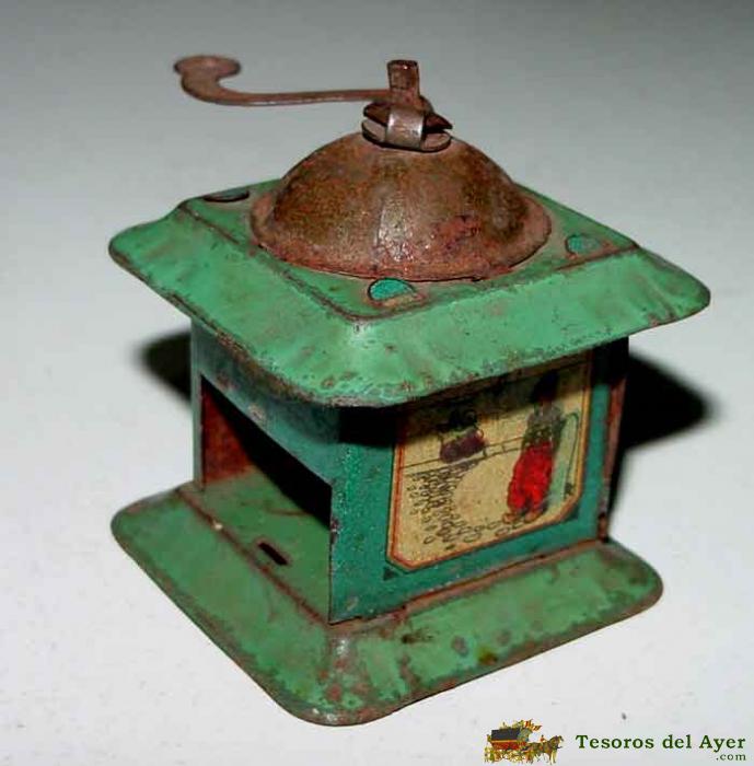 ANTIGUO MOLINILLO DEVOJALATA LITOGRAFIADA DE LA MARCA RICO - MIDE 5 CMS. DE ALTURA Y DE BASE 4,5 X 4,5 CMS. RARO DE ENCONTRAR EN COLOR AZUL TAL COMO SE VE EN LAS FOTOGRAFIAS QUE SE ACOMPAÑAN - LE FALTA EL CAJONCITO PERO SIEMPRE SE PUEDE RECONSTRUIR UNO.