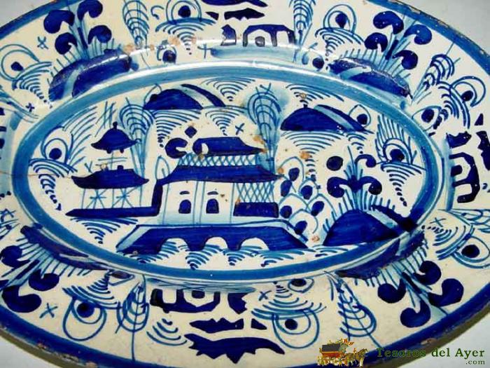 ANTIGUA BANDEJA DE CERAMICA PORTUGUESA - NO FIGURA MARCA - MIDE 33X24 CMS - CON ALGUN DESPERFECTO.