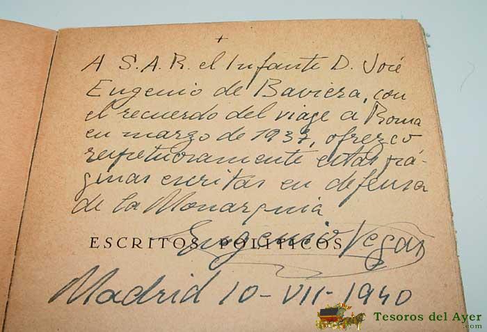 ESCRITOS POLíTICOS. VEGAS LATAPIE, EUGENIO - DEDICADO CON FIRMA AUTOGRAFA DEL AUTOR .- MONARQUIA -MADRID, CULTURA ESPAñOLA, 1940. 19X13 CM. 258 P. RúSTICA. 1ª EDICIóN EN LIBRO