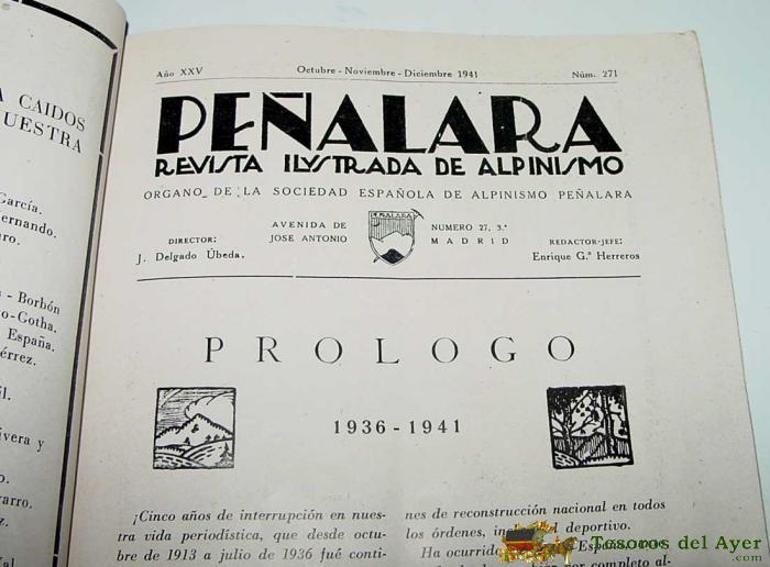ANTIGUA REVISTA PEÑALARA - OCTUBRE, NOVIEMBRE, DICIEMBRE - NUM. 271 - AÑO 1941 - REVISTA ILUSTRADA DE ALPINISMO - LOS PICOS DE EUROPA, DE PIEDRAFITA A PINETA - TIENE 32 PAGINAS - MIDE 24,5 X 17 CMS.