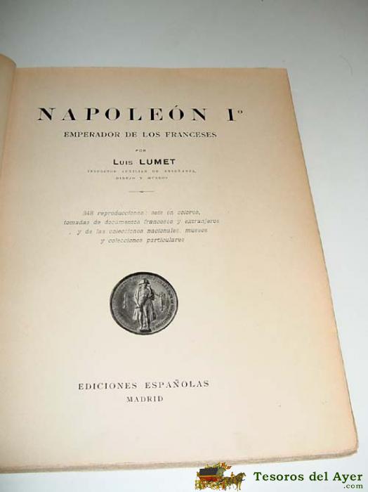 LUMET, LUIS - 1908 - NAPOLEON I. EMPERADOR DE LOS FRANCESES. 348 REPRODUCCIONES: 6 EN COLORES, TOMADAS DE DOCUMENTOS FRANCESES Y EXTRANJEROS Y DE LAS COLECCIONES NACIONALES, MUSEOS Y COLECCIONES PARTICULARES - EDICIONES ESPAñOLAS, 164 PGS. CON INSERTOS DE ARTICULOS PERIODISTICOS REFERIDOS A NAPOLEON. ENSAYO FRANCES 1908 BUEN ESTADO 4TO - 30,5 X 23 CMS.