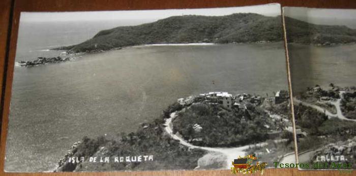 ANTIGUA FOTO POSTAL TRIPLE DE LA ISLA DE LA ROQUETA Y LA CALETA - MEXICO - BUEN ESTADO DE CONSERVACION . COMPLETAMENTE ORIGINAL DE EPOCA.