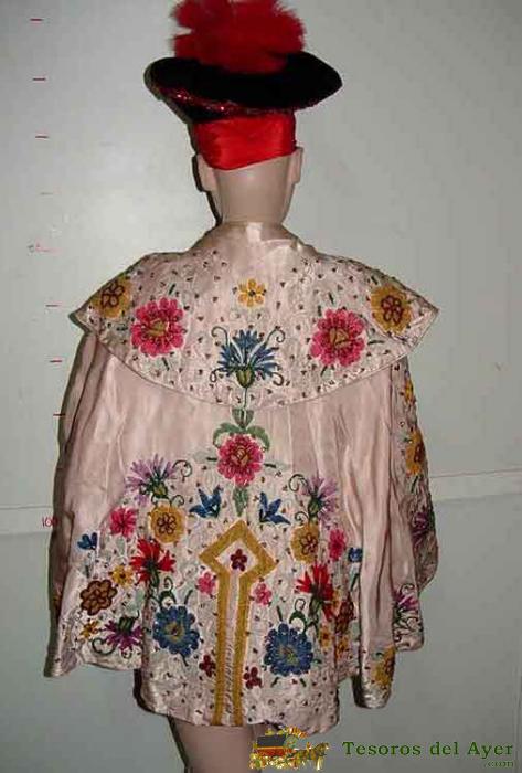 ANTIGUO TRAJE DE TRAPECISTA DE ESTILO MODERNISTA AÑOS 20-30, COMPUESTO DE 3 PIEZAS MALLA CUAJADA DE PEDRERIA MARAVILLOSAMENTE COMBINADA, SOMBRERO DE TERCIOPELO CON APLIQUES DE GASA EN FORMA DE FLOR Y PEDRERIA, Y CAPA CON FORMA DE CAPOTE TAURINO EXQUISITAM
