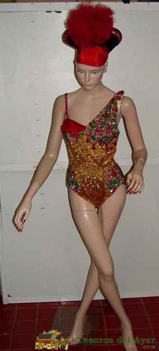 ANTIGUO TRAJE DE TRAPECISTA ESPAÑOLA ESTILO MODERNISTA CON INSPIRACION TAURINA AÑOS 20-30, COMPUESTO DE 3 PIEZAS MALLA CUAJADA DE PEDRERIA MARAVILLOSAMENTE COMBINADA Y APLICACIONES DE MADROÑOS DE COLOR ROJO AL AIRE TAL COMO SE VE EN LA FOTO, SOMBRERO DE TERCIOPELO CON APLIQUES DE GASA EN FORMA DE FLOR Y PEDRERIA, Y CAPA CON FORMA DE CAPOTE TAURINO EXQUISITAMENTE BORDADO A MANO CON PEQUEÑITAS PIEDRAS DE BRILLO. AUTENTICA OBRA DE ARTE ANTIGUA PARA UN VERDADERO COLECCIONISTA DE CIRCO.