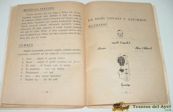 METODO DE ARABE DIALECTAL MARROQUI - LIBROS I - VALDERRAMA MARTÍNEZ, FERNANDO - EDIT. MARROQUI. - TETUAN - AÑOS 50 ? MIDE 17 CM. 109 PAG. - ILUSTR. CON DIBUJOS EN EL TEXTO POR HOSAIN AMIN IBRAHIM - TIENE ANOTACIONES EN LAPICERO DEL ANTERIOR PROPIETARIO.