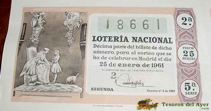 ANTIGUO BILLETE DE LA LOTERIA NACIONAL SORTEO DE 25 DE ENERO DE 1961 CON 10 DECIMOS - MIDE 51 X 36 CMS. - BUEN ESTADO DE CONSERVACION - ANCIEN LOTERIE - OLD LOTTERY