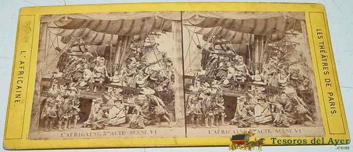 ANTIGUA FOTO ESTEREOSCOPICA DE LA OPERA LA AFRICANA - MIDE 18X8,5 CMS. - SIGLO XIX - AFRICAINE - GIACOMO MEYERBEER - óPERA EN CINCO ACTOS CON LIBRETO DE SCRIBE, QUE SE ESTRENó PóSTUMAMENTE A LA MUERTE DEL AUTOR, EL 28 DE ABRIL DE 1865 EN LA ÓPERA DE PARíS. AVENTURAS DE VASCO DE GAMA EN SUS DESCUBRIMIENTOS POR MADAGASCAR, DE DONDE TRAE UN CAUTIVO Y UNA CAUTIVA, DE LA QUE SE ENAMORA.