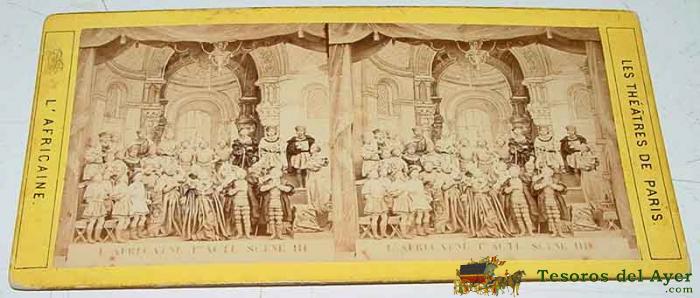 ANTIGUA FOTO ESTEREOSCOPICA DE LA OPERA LA AFRICANA - MIDE 18X8,5 CMS. - SIGLO XIX - AFRICAINE - GIACOMO MEYERBEER - óPERA EN CINCO ACTOS CON LIBRETO DE SCRIBE, QUE SE ESTRENó PóSTUMAMENTE A LA MUERTE DEL AUTOR, EL 28 DE ABRIL DE 1865 EN LA ÓPERA DE PARíS. AVENTURAS DE VASCO DE GAMA EN SUS DESCUBRIMIENTOS POR MADAGASCAR, DE DONDE TRAE UN CAUTIVO Y UNA CAUTIVA, DE LA QUE SE ENAMORA.
