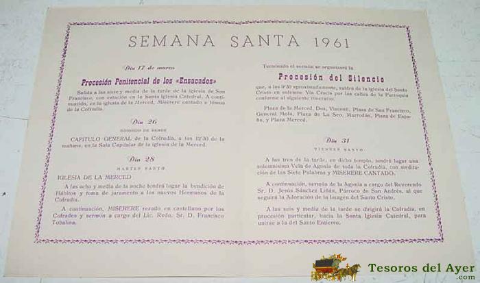 PROGRAMA DE ACTOS DE LA COFRADIA DEL SILENCIO DEL SANTISIMO CRISTO DEL REBATE - SEMANA SANTA DE TARAZONA 1961 - ZARAGOZA - ARAGON - 8 PAG - MIDE 17 X 12 CMS.