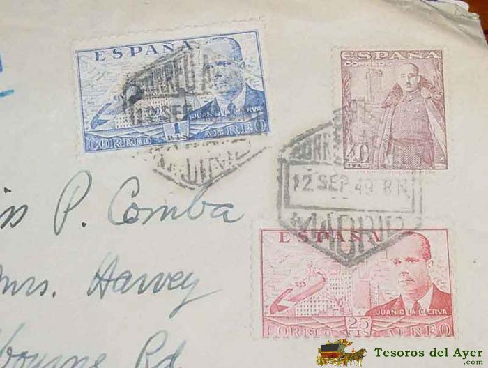 ANTIGUO SOBRE CIRCULADO POR AVION DESDE MADRID A HOVE (REINO UNIDO) EL 12 DE SEPTIEMBRE DE 1949 - HISTORIA POSTAL, TAL COMO SE VE EN LAS FOTOS, BUEN ESTADO DE CONSERVACION