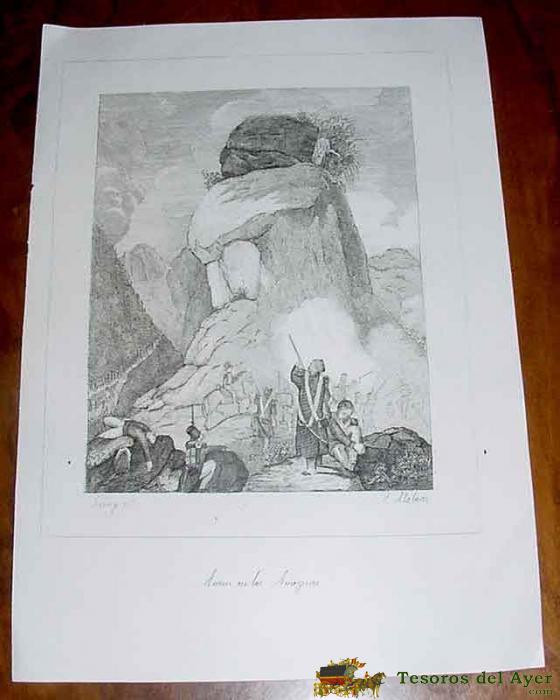 ANTIGUO GRABADO DE LA GUERRA CARLISTA - ACCION EN LAS AMEZANAS - DE SAINZ Y ALABERN - MIDE 21,5 X 15 CMS. SIGLO XIX - CARLISMO