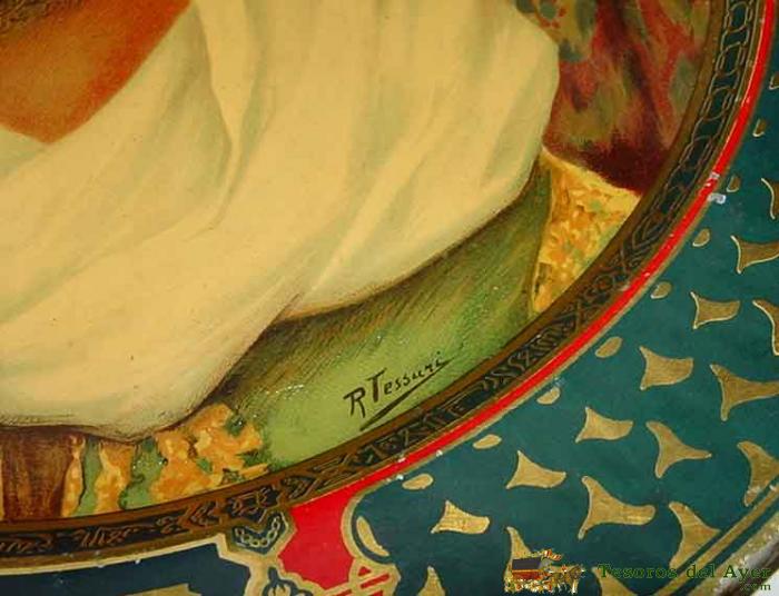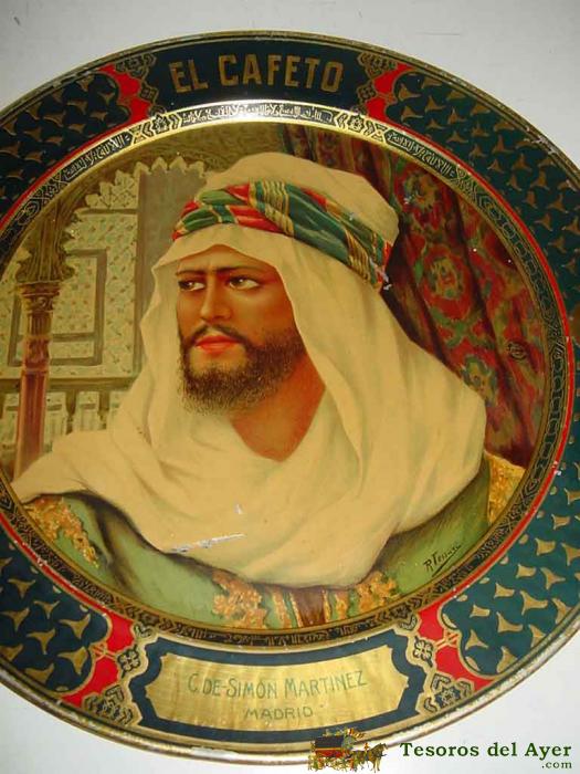 PLATO DE PUBLICIDAD DEL CAFETO AñOS 20 - EN MUY BUEN ESTADO DE CONSERVACIóN, REALIZADO EN HOJALATA LITOGRAFIADA, MIDE 37 CM DE DIáMETRO - FIRMADO POR R. TESSURI - LITOGRAFIA DE G. DE ANDREIS DE BADALONA