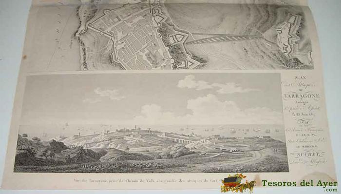 GRABADO ANTIGUO DEL PLANO DEL ATAQUE A TARRAGONA, ASEDIADA Y TOMADA AL ASALTO EL 28 DE JUNIO DE 1811 POR LA ARMADA FRANCESA DE ARAGON. GUERRA DE LA INDEPENDENCIA . MAPA REEALIZADO EN 1812 APROXIMADAMENTE - MUY DETALLADO CON VISTA TOMADA DESDE EL CAMINO DE