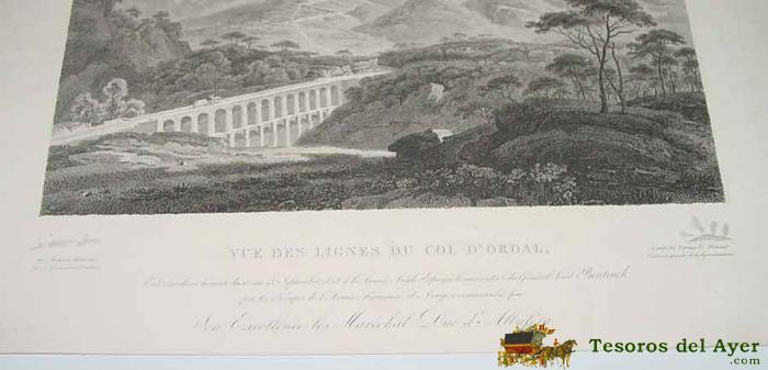 ANTIGUO GRABADO CON VISTA DE LAS LINEAS DEL COL D´ORDAL, TOMADA EL LA NOCHE DEL 12 AL 13 DE SEPTIEMBRE DE 1813 A LA ARMADA ANGLO ESPAÑOLA A LAS ORDENES DEL GENERAL LORD BENTINCK POR LAS TROPAS DE LA ARMADA FRANCESA DE ARAGON - MIDE 38,5 X 19 CMS.