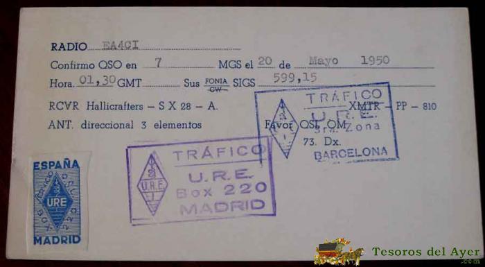 ANTIGUA TARJETA QSL . EA3FL . BARCELONA - AÑOS 50