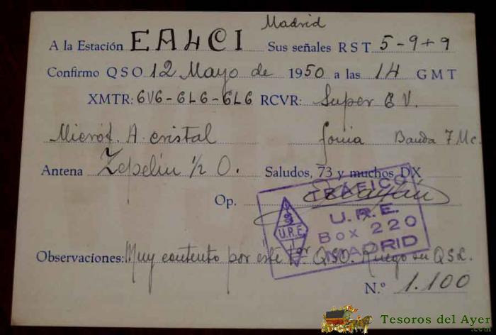ANTIGUA TARJETA QSL . EA5CW . TERRATEIG (VALENCIA) - AÑOS 50