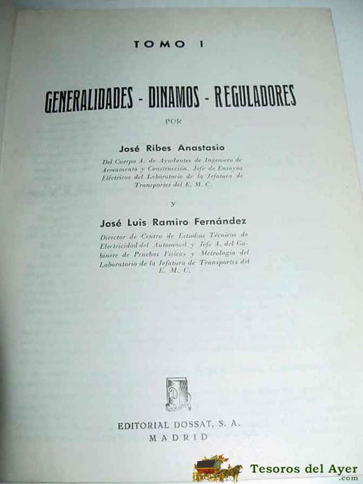 ANTIGUO LIBRO ESTUDIOS TECNICOS ELECTRICOS DEL AUTOMOVIL - AÑO 1669 - RIBES JOSE - RAMIRO JOSE LUIS - MIDE 22 X 16 CMS - EDICIONES DOSSAT 1965 - 524 PAGINAS - GENERALIDADES DINAMOS REGULADORES CON GRAN INFUSION DE ILUSTRACIONES TOMO I - CON MUCHOS ESQUEMAS.