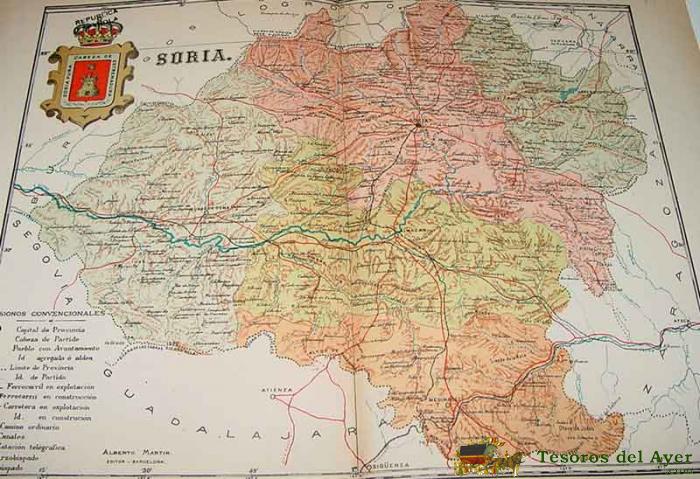 ANTIGUO MAPA SORIA - EPOCA DE LA REPUBLICA ESPAÑOLA - SE APRECIA EN EL ESCUDO COMO EN LA IMPRENTA TACHARON LA CORONA Y TIENE EL SELLO DE LA REPUBLICA ESPAÑOLA - ED. A. MARTIN - MIDE 36 X 27 CMS.