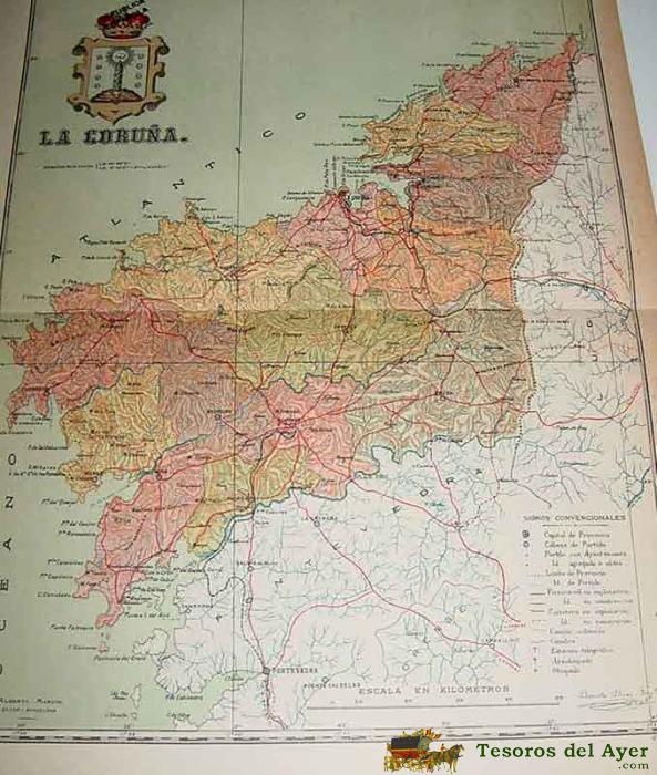 ANTIGUO MAPA DE LA CORUÑA - EPOCA DE LA REPUBLICA ESPAÑOLA - SE APRECIA EN EL ESCUDO COMO EN LA IMPRENTA TACHARON LA CORONA CON SELLO DE LA REPUBLICA ESPAÑOLA - ED. A. MARTIN - MIDE 36 X 27 CMS.